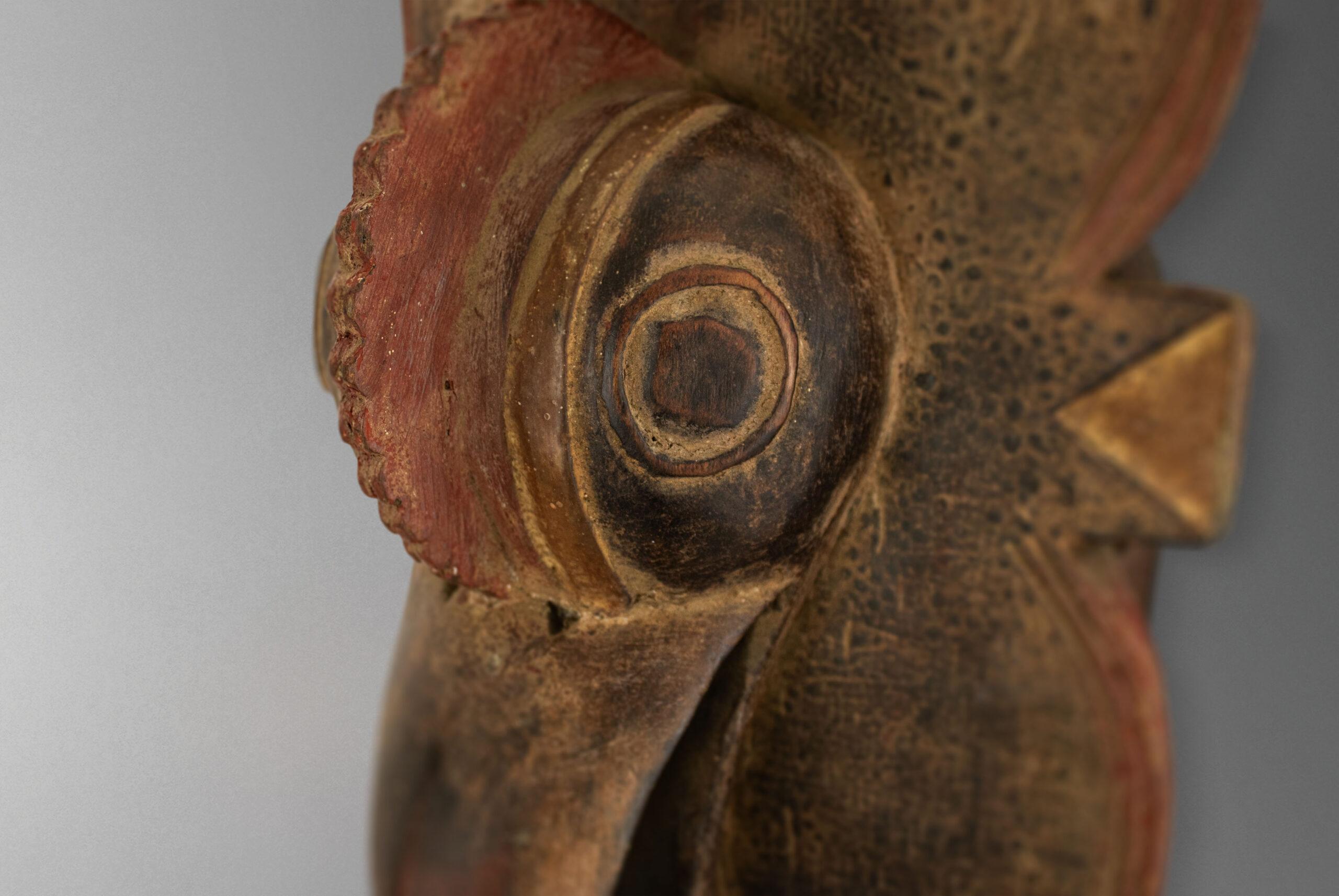 | Details | Mascara en madera tallada a mano destaca la forma de pajaro calao y la bella policromia de sus colores. |